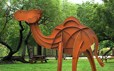 剪影雕塑,看的就是個(gè)輪廓!把你想做的東西(人、動(dòng)物、樹(shù)啊啥的),簡(jiǎn)化成影子形狀。材料選擇多:不銹鋼、耐候鋼(喜歡生銹那種質(zhì)感)、玻璃鋼、鍍鋅板、鐵板都成。最后還得靠噴漆,給它們打扮上顏色。
